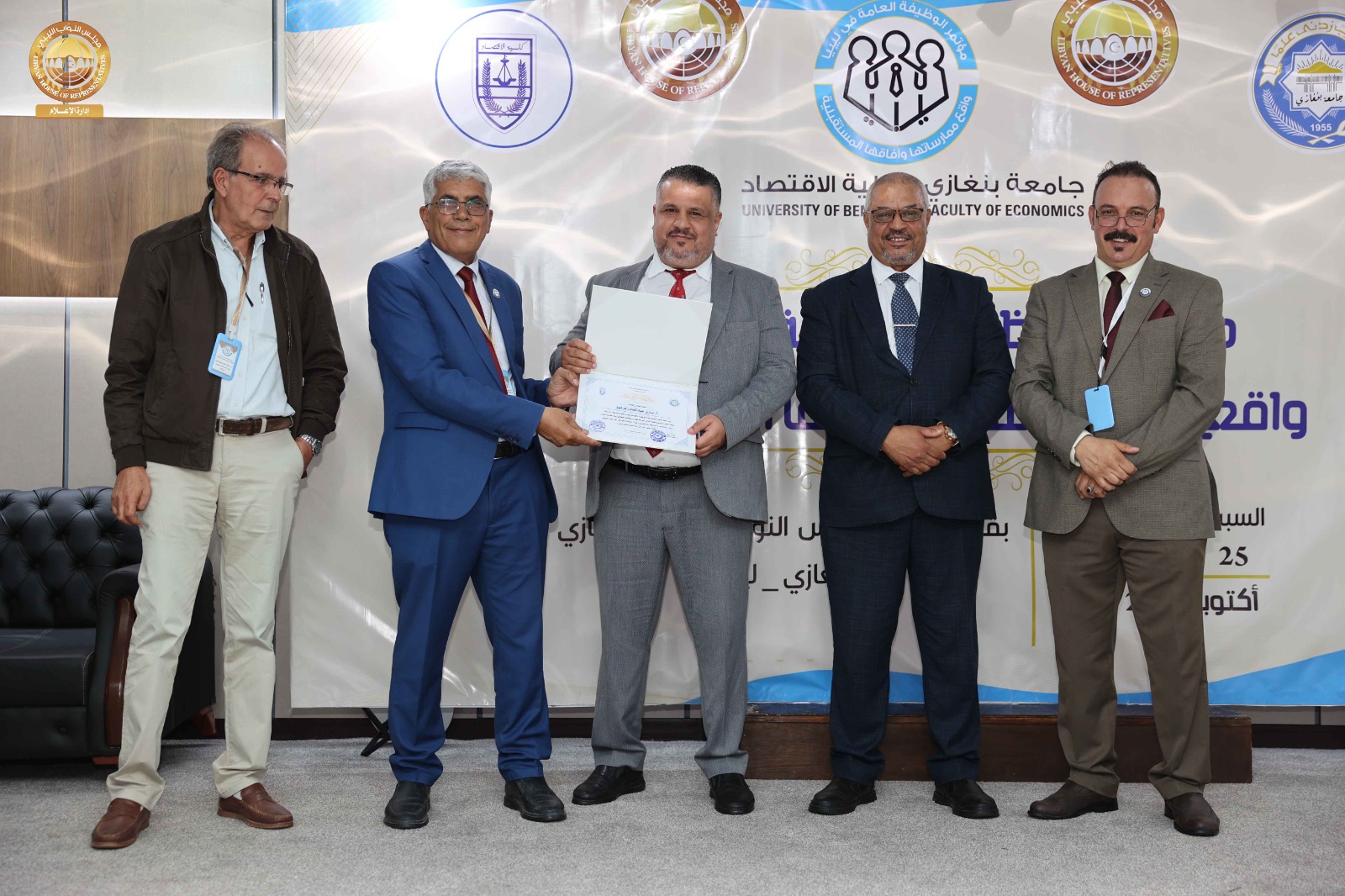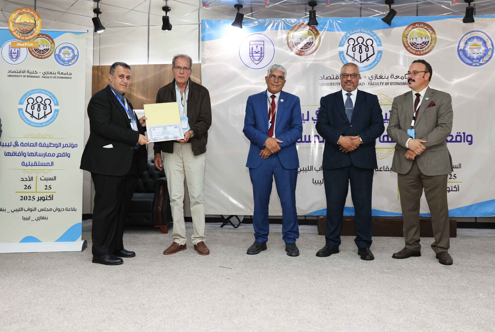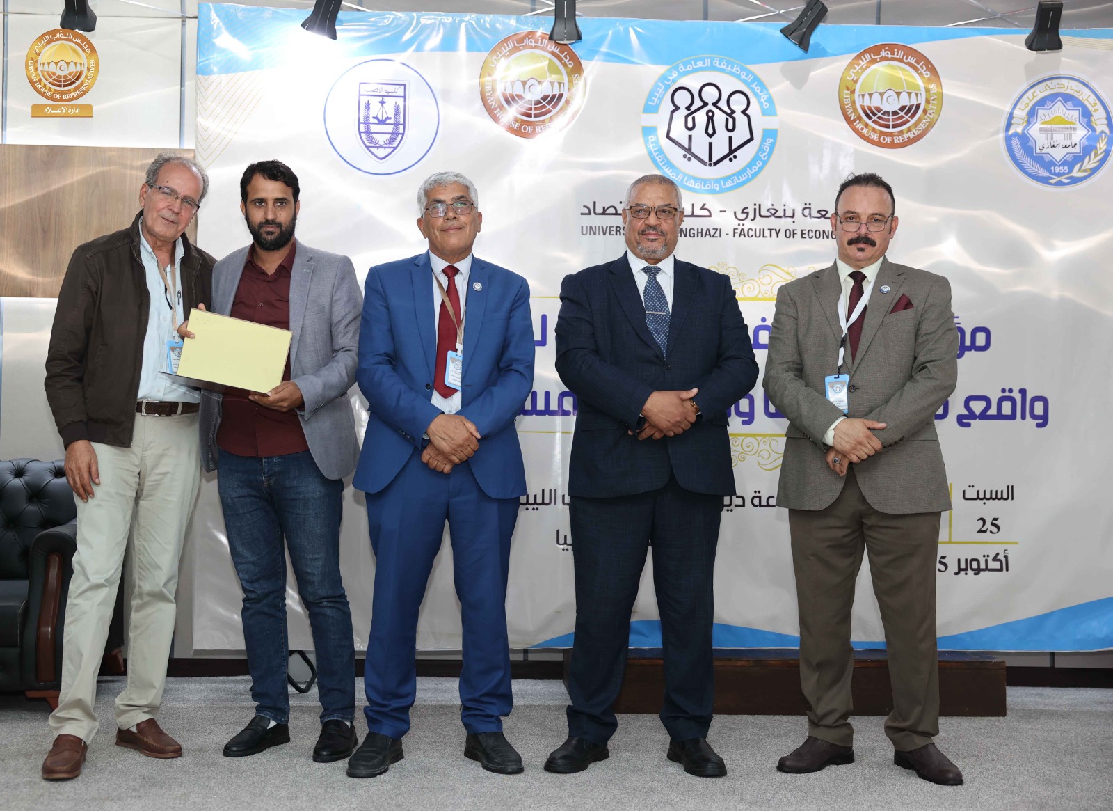 اختتمت يوم أمس الأحد أعمال مؤتمر “الوظيفة العامة في ليبيا: واقع ممارساتها وآفاقها المستقبلية”، الذي استضافه ديوان مجلس النواب، ونظّمته كلية الاقتصاد بجامعة بنغازي، بمشاركة عدد من الباحثين والأكاديميين والخبراء من مختلف الجامعات الليبية.