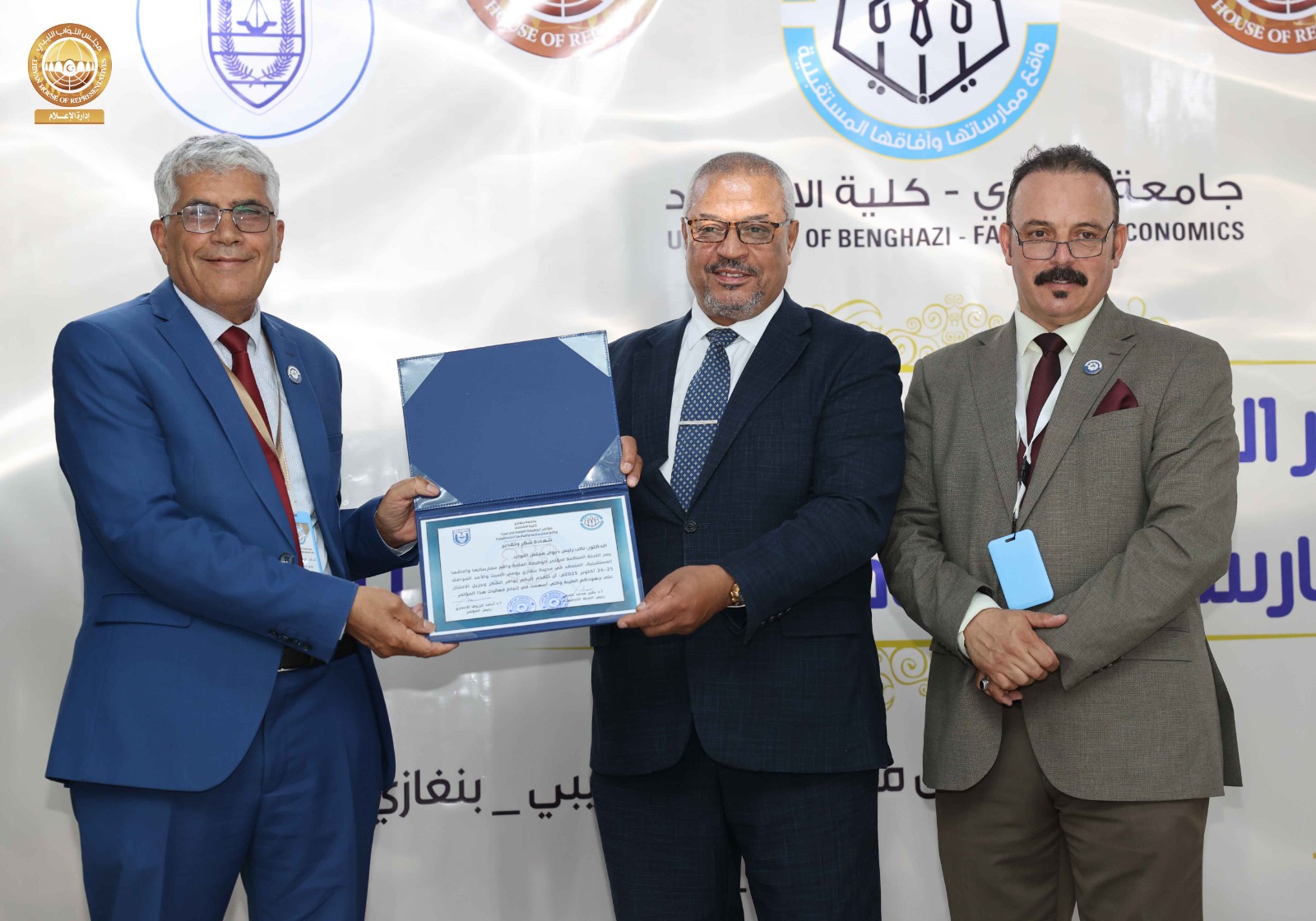 وفي ختام المؤتمر تم تكريم نائب رئيس ديوان مجلس النواب الدكتور” رسمي بالروين ” وعدد من مديري الإدارات والمكاتب وموظفي الديوان تقديراً لدورهم وجهودهم المبذولة في إنجاح فعاليات المؤتمر، كما تم تكريم المشاركين تقديراً لإسهاماتهم العلمية في إنجاح أعمال المؤتمر.