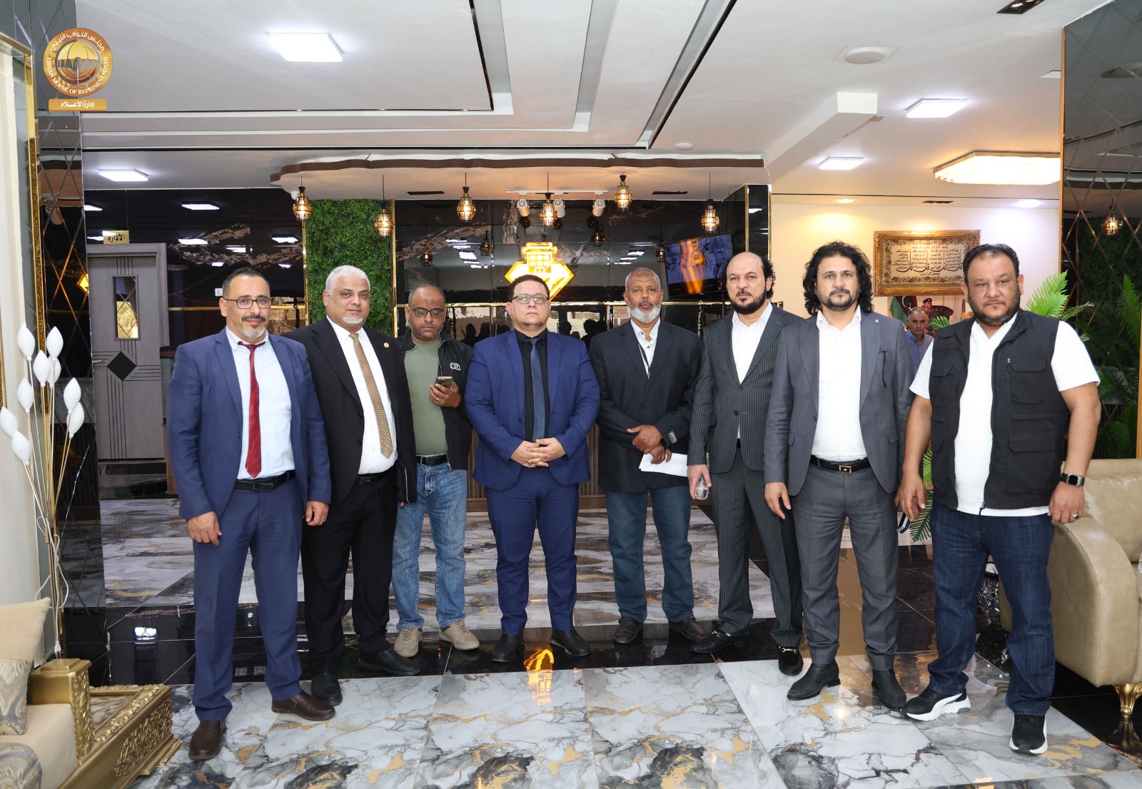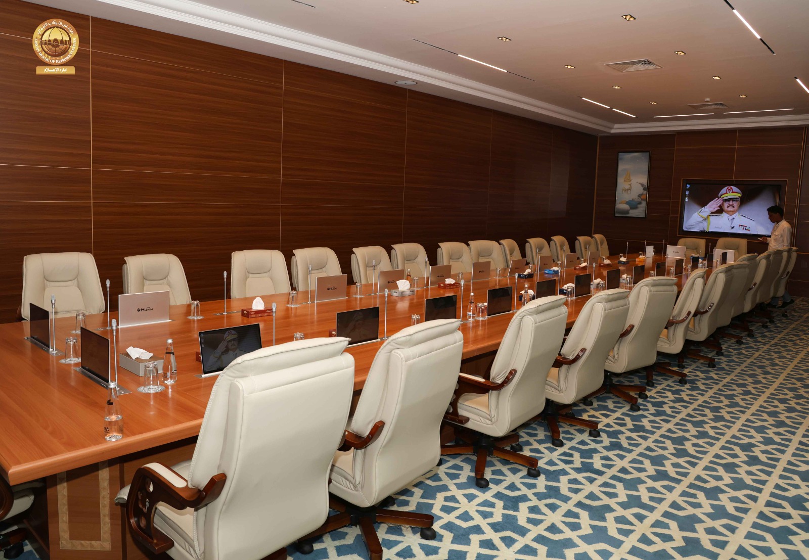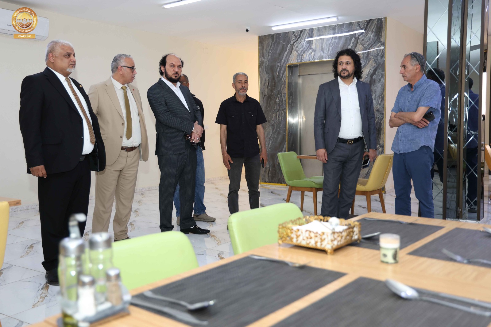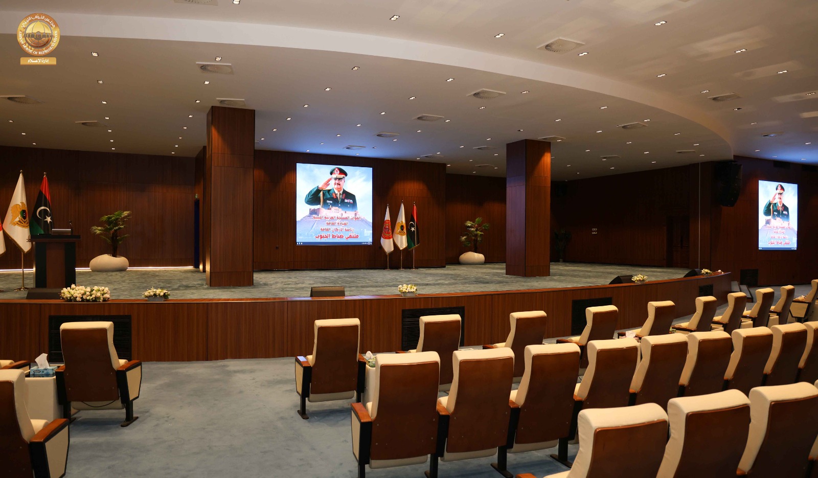 حيث قامت اللجنة برئاسة ” مدير إدارة العلاقات بالديوان السيد ” إدريس الفرجاني وعضوية السادة ” مدير إدارة الإعلام المتحدث الرسمي باسم المجلس” عبد الله بليحق، و مدير إدارة التقنية والمعلومات ” م. حاتم الترهوني “، و مدير إدارة الخدمات ” مفتاح المهدوي، و مدير إدارة المشروعات “م. عبد الواحد المدير ” رفقة عضو مجلس النواب عن مدينة سبها السيد ” أحمد الشارف ” ومدير فرع الديوان في سبها ” محمد سويسي” والمكلّف بالإشراف والمتابعة لمشاريع صندوق التنمية وإعادة إعمار ليبيا بالمنطقة الجنوبية السيد ” م. أحمد النمر ” قاموا بجولة شملت القاعة الرئيسية بالمدينة وقاعات الاجتماعات ومقرات الإقامة و الفنادق إلى جانب الاطلاع على مختلف التجهيزات الفنية واللوجستية ذات العلاقة باستضافة أعمال جلسة مجلس النواب.