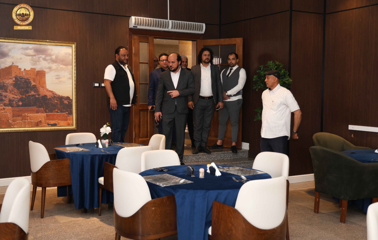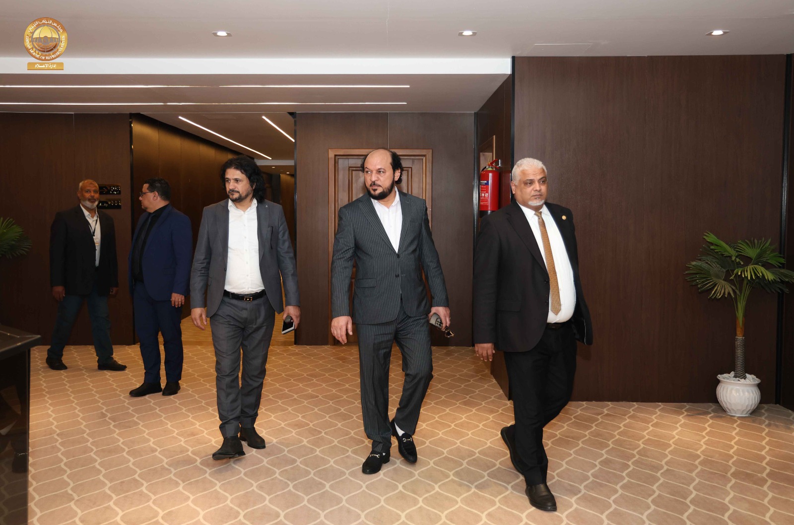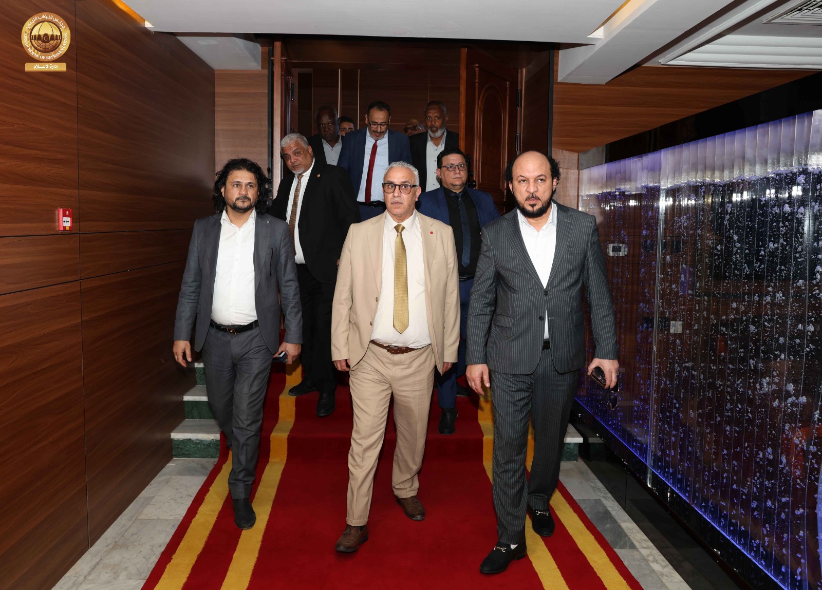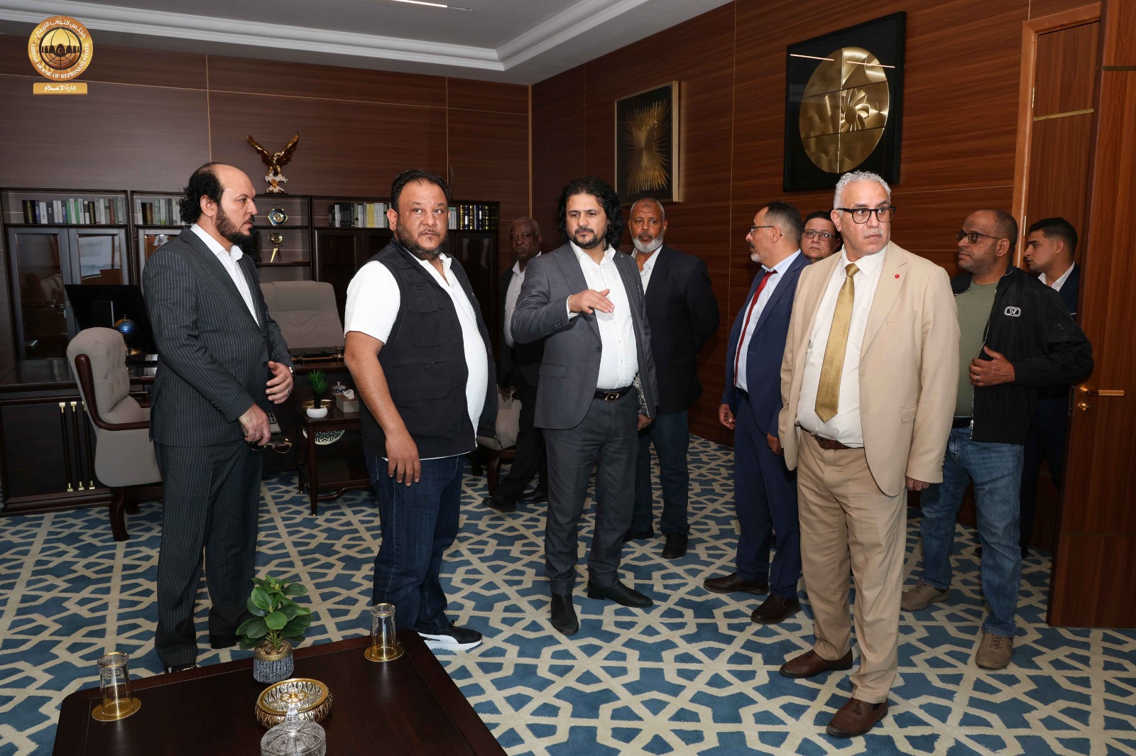 حيث قامت اللجنة برئاسة ” مدير إدارة العلاقات بالديوان السيد ” إدريس الفرجاني وعضوية السادة ” مدير إدارة الإعلام المتحدث الرسمي باسم المجلس” عبد الله بليحق، و مدير إدارة التقنية والمعلومات ” م. حاتم الترهوني “، و مدير إدارة الخدمات ” مفتاح المهدوي، و مدير إدارة المشروعات “م. عبد الواحد المدير ” رفقة عضو مجلس النواب عن مدينة سبها السيد ” أحمد الشارف ” ومدير فرع الديوان في سبها ” محمد سويسي” والمكلّف بالإشراف والمتابعة لمشاريع صندوق التنمية وإعادة إعمار ليبيا بالمنطقة الجنوبية السيد ” م. أحمد النمر ” قاموا بجولة شملت القاعة الرئيسية بالمدينة وقاعات الاجتماعات ومقرات الإقامة و الفنادق إلى جانب الاطلاع على مختلف التجهيزات الفنية واللوجستية ذات العلاقة باستضافة أعمال جلسة مجلس النواب.