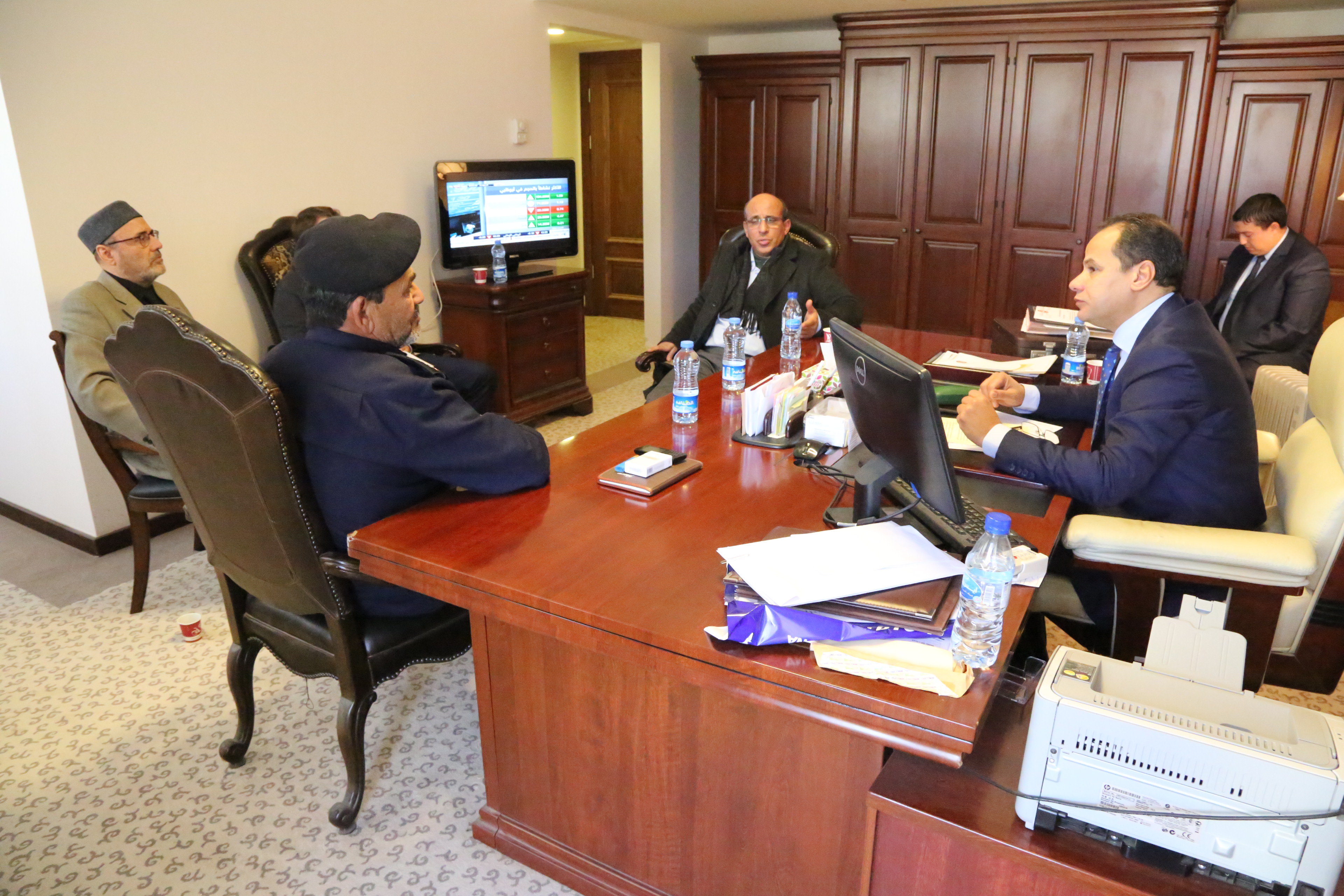 عقد صباح اليوم الأحد معالي النائب الثاني لفخامة رئيس مجلس النواب الدكتور “احميد حومة” اجتماعاً مع رئيس شركة البريقة لتسويق النفط السيد ” خيرالله العبيدي” ومدير مديرية أمن طبرق العميد ” أحمد بالحكومة” وبحضور مدير مكتب شؤون الرئاسة بالمجلس السيد “عِوَض الفيتوري” .