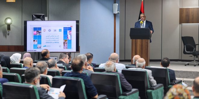 وألقى رئيس لجنة الصحة والبيئة بمجلس النواب، الدكتور” نصر الدين مهنى” ، كلمة رحّب في مستهلها بالحاضرين، مؤكداً أن اللقاء يسلّط الضوء على عمل علمي وطني بالغ الأهمية يتمثل في المسح العنقودي متعدد المؤشرات، موضحاً أن هذا المسح يُعد منهجاً إحصائياً دقيقاً يقوم على تقسيم المجتمع إلى فئات ممثّلة، يتم من خلالها جمع بيانات ميدانية شاملة تعكس واقع الإنسان في مختلف جوانب فئته، مضيفاً أن أهمية هذا المسح لا تقتصر على إحصاء الأعداد، بل تمتد إلى فهم حالة المجتمع عبر مؤشرات مترابطة تشمل الصحة والتغذية والبيئة والتعليم، بما يتيح لصنّاع القرار بناء سياسات قائمة على بيانات دقيقة بدلاً من التقديرات العامة، مشيراً إلى أن الاعتماد على أسلوب العيّنات العنقودية يتيح تمثيلاً أكثر دقة للواقع، ويساعد على الوصول إلى تفاصيله في مختلف مناطق ليبيا ، مبيناً أن هذا المسح يمثل قراءة متكاملة لمسار تكوّن الإنسان داخل المجتمع، بدءاً من المراحل الأولى لما قبل الولادة، حيث تمثل الأم البيئة الحاضنة والمصدر الأول، وهي الأساس الذي تنعكس من خلاله الحالة الصحية والغذائية والبيئية على الفرد والمجتمع ككل.