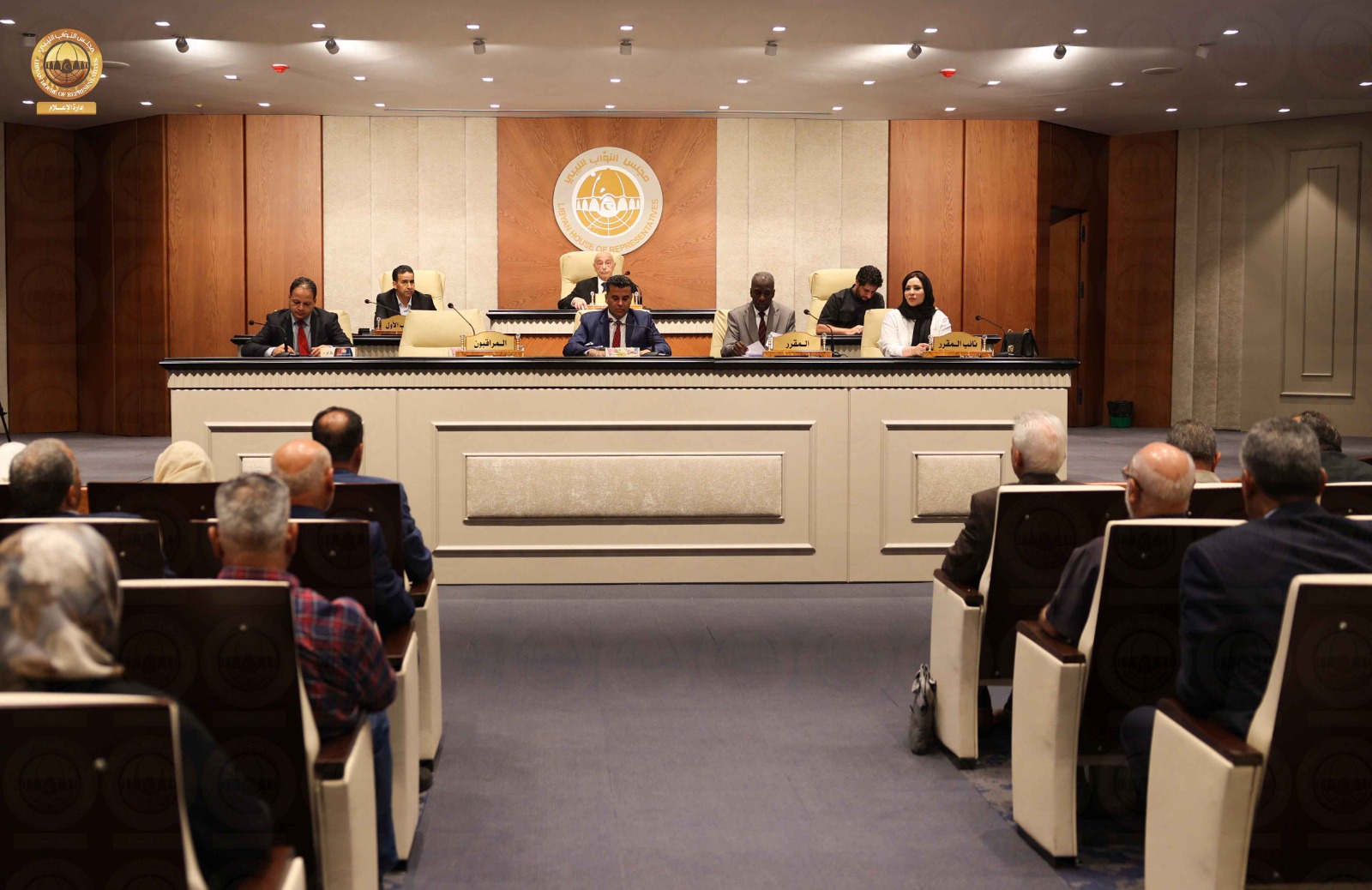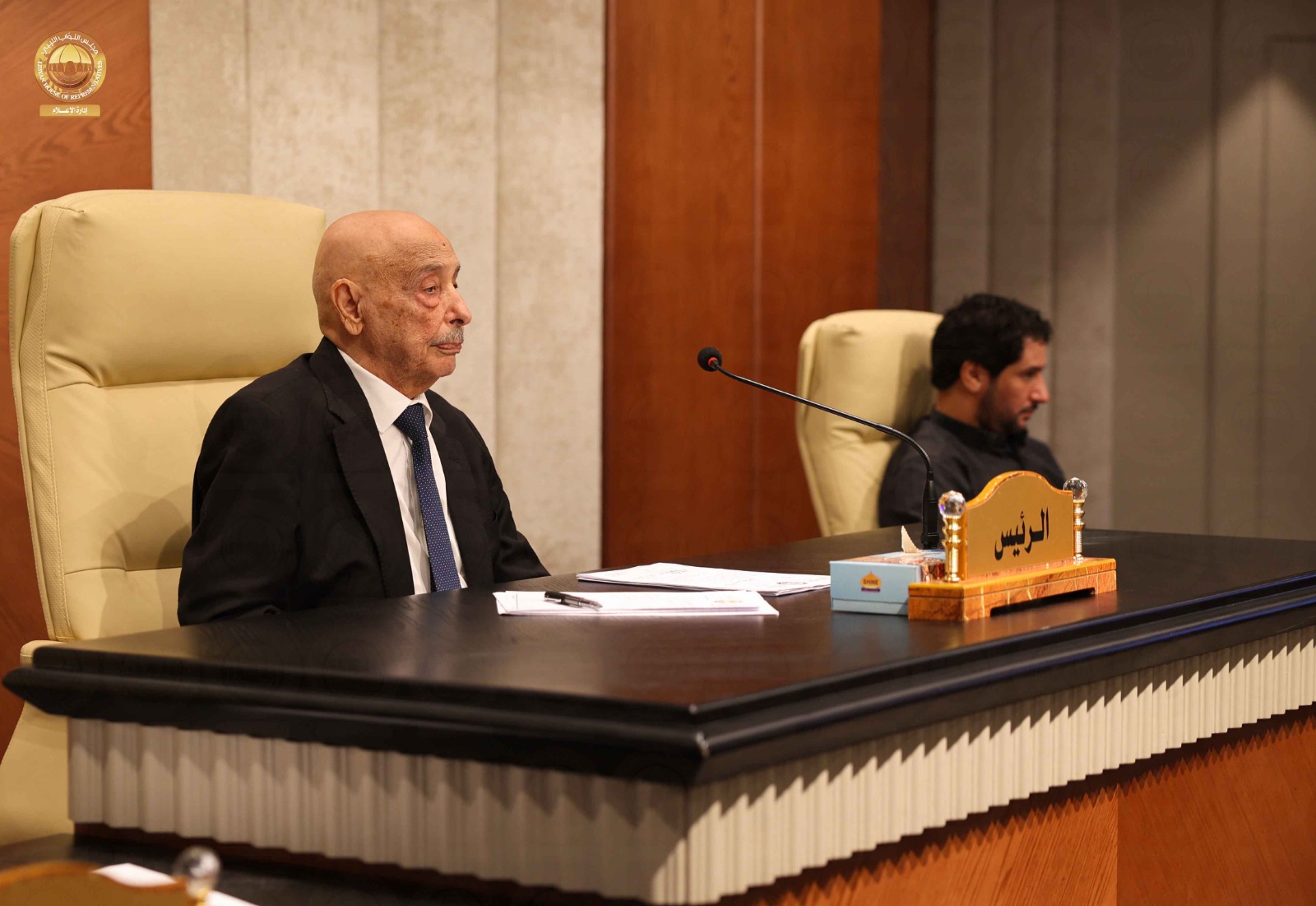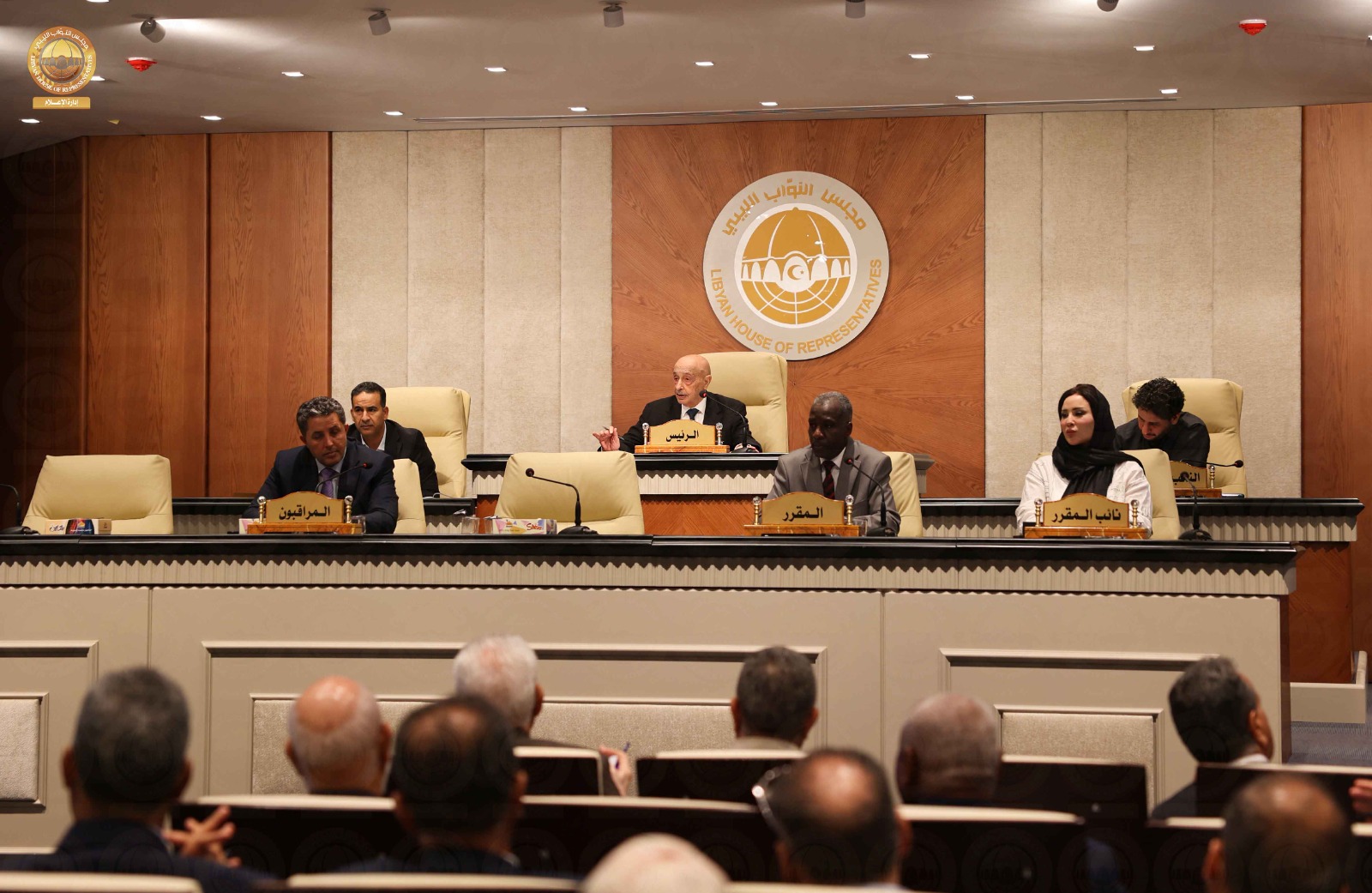 استأنف مجلس النواب جلسته الرسمية اليوم الاثنين بمقره في مدينة بنغازي برئاسة السيد رئيس مجلس النواب المستشار” عقيلة صالح” وبحضور النائب الأول لرئيس مجلس النواب السيد ” فوزي النويري ” والنائب الثاني لرئيس مجلس النواب السيد ” مصباح دومة ” وبحسب المتحدث الرسمي باسم مجلس النواب السيد ” عبدالله بليحق ” فإنه في مستهل جلسة اليوم ناقش المجلس المقترح المقدم من أكثر من سبعون نائباً بشأن تعديل القانون رقم (1) لسنة 2015 .م بشأن تعديل صلاحيات المستويات القيادية بالجيش الليبي ، حيث صوت المجلس بالإجماع على اعتماد هذا التعديل ، كما ناقش المجلس تكليف مستشار للأمن القومي وصوت المجلس بالإجماع على تكليف الفريق أول “عبدالرازق الناظوري ” مستشاراً للأمن القومي ، وكذلك ناقش مجلس النواب مشروع قانون الدين العام وبعد مناقشة هذا البند قرر المجلس احالته إلى اللجنة الدستورية والتشريعية ولجنة التخطيط والمالية والموازنة العامة بالمجلس ، وفي بند ما يستجد من أعمال ناقش مجلس النواب أزمة الكهرباء التي تمر بها البلاد ، وقرر المجلس تكليف رئيس لجنة الطاقة والموارد الطبيعية بالمجلس بالاجتماع مع رئيس مجلس النواب و رئيس مجلس الوزراء ووزير الكهرباء و المختصين في قطاع الكهرباء لمعالجة أزمة الطاقة على أن تقدم لجنة الطاقة تقريراً مفصلاً لمجلس النواب لاتخاذ ما يلزم لأنهاء أزمة الكهرباء في البلاد، وبذلك علقت الجلسة إلى يوم غدٍ الثلاثاء .