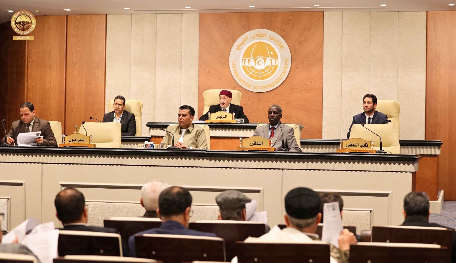 عقد مجلس النواب جلسته الرسمية اليوم الاثنين برئاسة السيد رئيس مجلس النواب المستشار ” عقيلة صالح “، وبحضور النائب الأول لرئيس مجلس النواب السيد ” فوزي النويري ” والنائب الثاني لرئيس مجلس النواب السيد ” مصباح دومة ” ، وبحسب المتحدث الرسمي باسم مجلس النواب السيد “عبدالله بليحق ” فإنه بعد مناقشة ومداولة بنود جدول الاعمال ، صوت المجلس في جلسة اليوم على إقرار استكمال المقاعد الشاغرة بالمفوضية الوطنية العليا للانتخابات ، كما قرر المجلس إحالة ميزانية المفوضية الوطنية العليا للانتخابات إلى لجنة التخطيط والمالية والموازنة العامة بالمجلس لإبداء الرأي وعرضها على المجلس في جلسة غدٍ الثلاثاء، كما أقرّ المجلس مشروع قانون زيادة مرتبات منتسبي القوات المسلحة ، وبذلك علقت الجلسة ليوم غدٍ الثلاثاء .