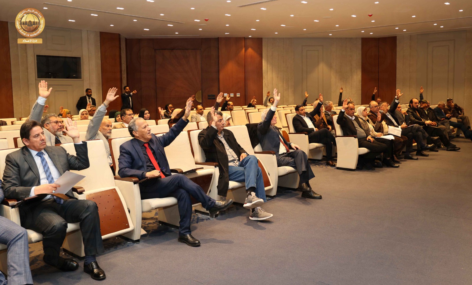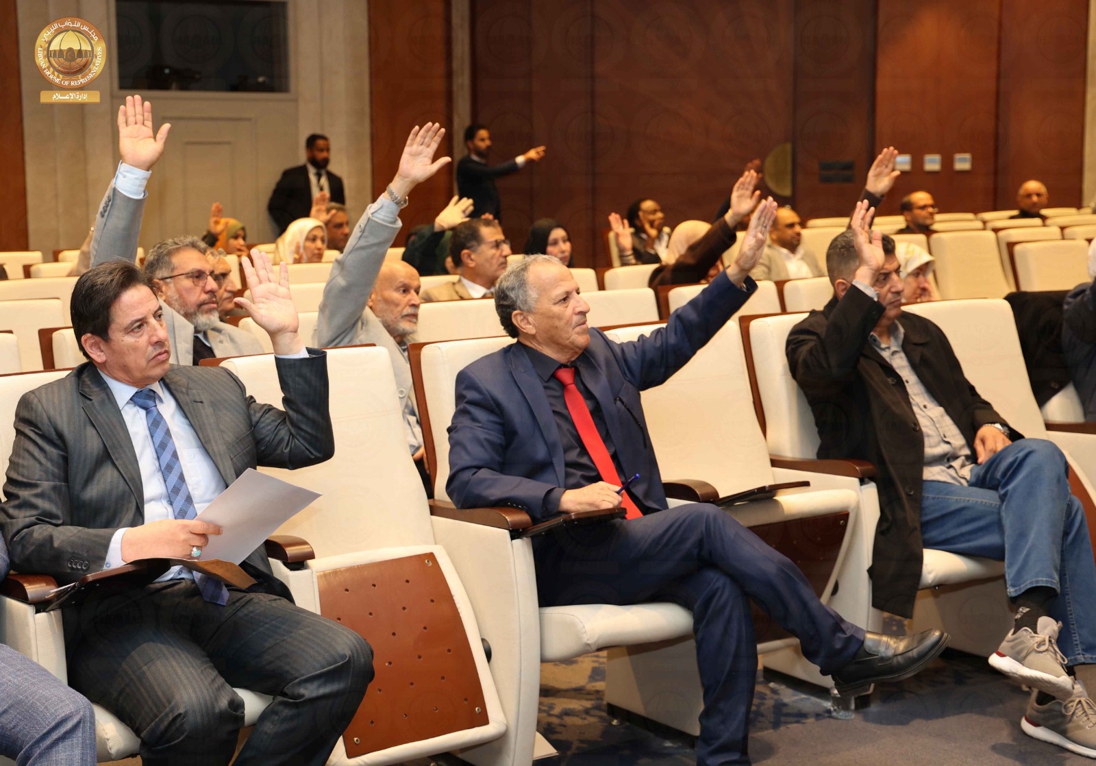 استأنف مجلس النواب جلسته الرسمية اليوم الثلاثاء برئاسة السيد رئيس مجلس النواب المستشار ” عقيلة صالح ” وبحضور النائب الأول لرئيس مجلس النواب السيد ” فوزي النويري “، والنائب الثاني لرئيس مجلس النواب السيد ” مصباح دومة ” و بحسب المتحدث الرسمي باسم مجلس النواب السيد “عبدالله بليحق ” فإنه بعد مناقشة ومداولة بنود جدول الاعمال، صوت المجلس بالإجماع على إقرار الميزانية المقدمة من المفوضية الوطنية العليا للانتخابات على أن تكون تحت إشراف لجنة المالية، كما صوت المجلس بالأغلبية على استدعاء محافظ مصرف ليبيا المركزي ونائبه وأعضاء مجلس الإدارة لمناقشة ازمة شح السيولة والأمور المالية للدولة وكذلك استدعاء الحكومة الليبية والمؤسسة الوطنية للنفط ، كما قرر المجلس تشكيل لجنة بشأن دراسة أوضاع المتقاعدين ، وفيما يخص البند المتعلق بمقترح تعديل القانون رقم (2) لسنة 2018 .م بشأن الجامعات ليكون تحت مسمى قانون التعليم العالي والبحث العلمي ومقترح تعديل القانون رقم (21) لسنة 2014 بشأن تنظيم التعليم العالي والتقني ، قرر المجلس تشكيل لجنة تحت إشراف النائب الثاني لرئيس مجلس النواب السيد ” مصباح دومة ” وتضم السادة النواب ” صالح هاشم ، عبدالسلام نصية ، فريحة الحضيري ” لدراسة مقترح تعديل القانون مع السادة أعضاء لجنة شؤون التعليم.