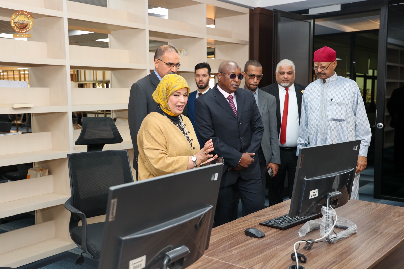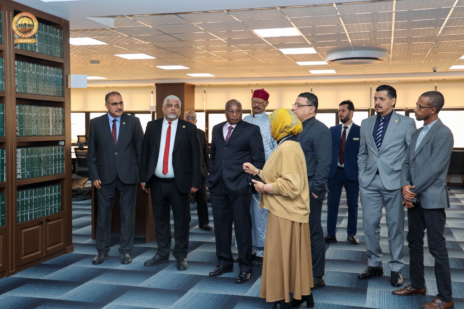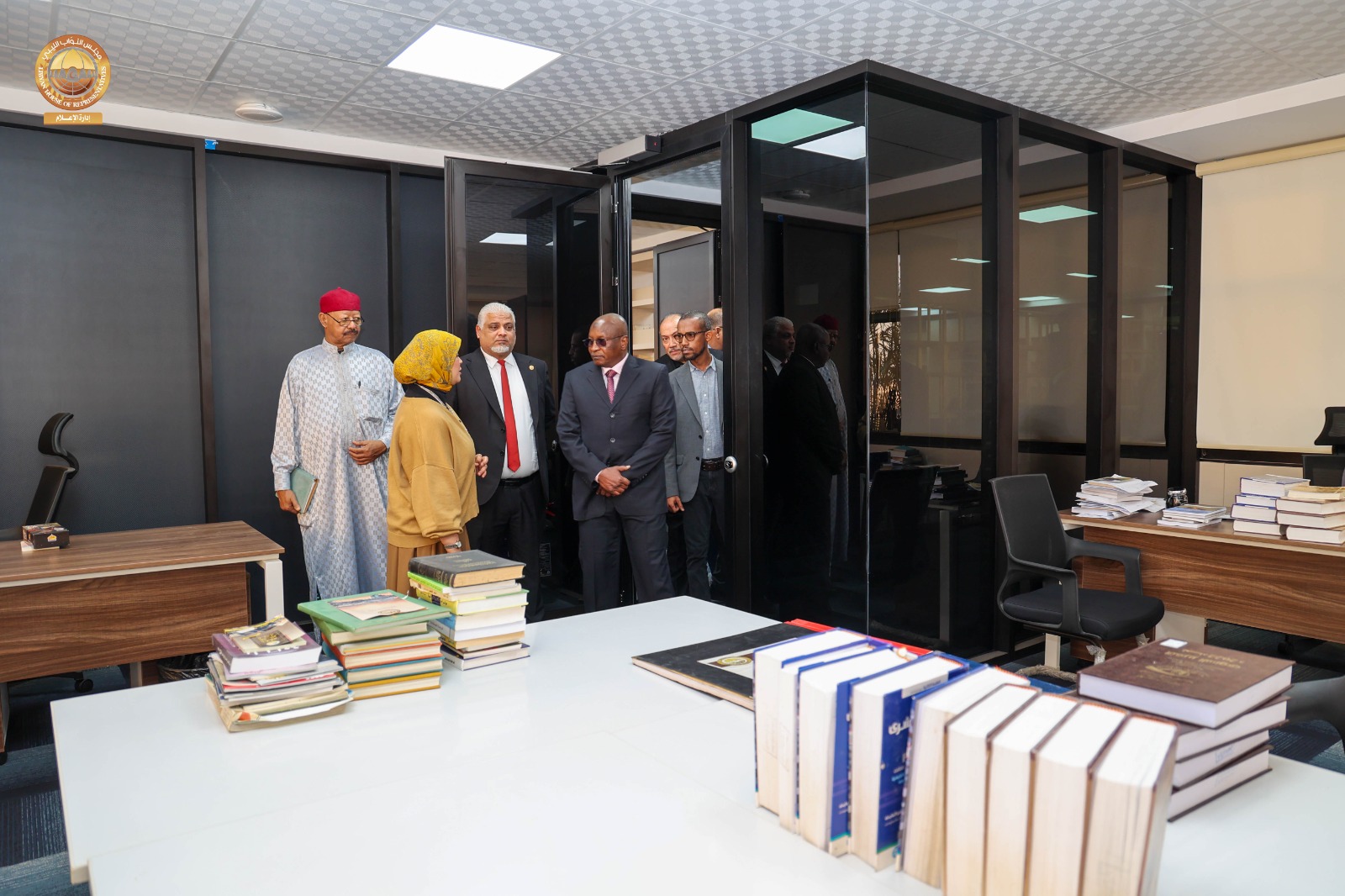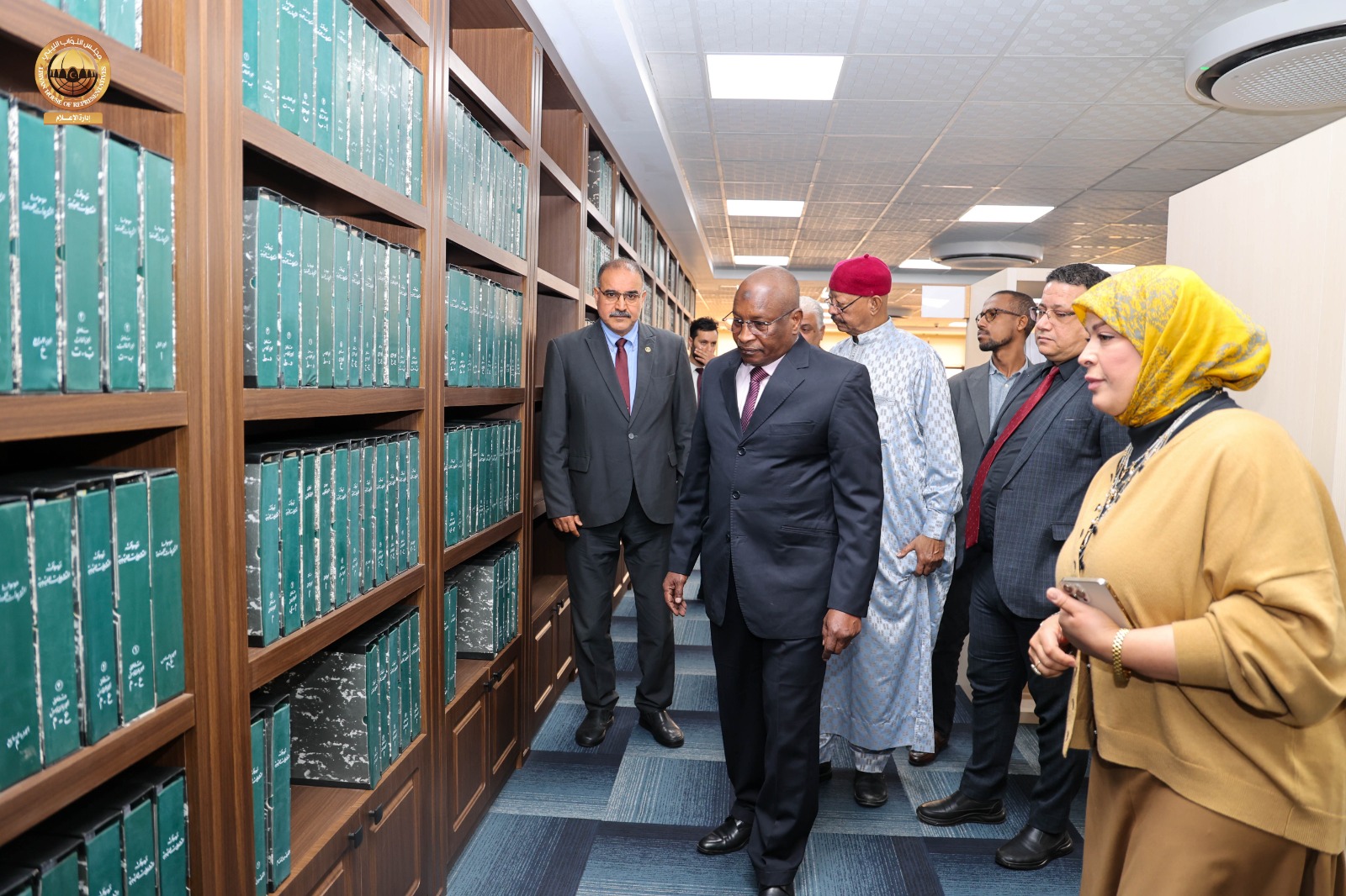 وعقب اللقاء قام سفير جمهورية تشاد لدى ليبيا رفقة عدد من مديري الإدارات وأمينة المكتبة البرلمانية بديوان مجلس النواب بزيارة للمكتبة البرلمانية بالديوان ، اطلع خلالها على محتويات المكتبة من كتب وموسوعات ووثائق، بالإضافة إلى وسائل الإيضاح الحديثة والمساحات المخصصة للقراءة والاطلاع التي توفر بيئة مثالية لرواد المكتبة، كما قام بجولة داخل أقسام المكتبة، استمع فيها إلى شروح وافية من القائمين على المكتبة حول طرق اقتناء الكتب، وفهرستها، وتصنيفها وفق أحدث الأساليب المعتمدة في علم المكتبات، كما اطّلع على المكتبة الإلكترونية التي تتيح الوصول إلى الكتب والمصادر والمراجع بصيغ رقمية.
