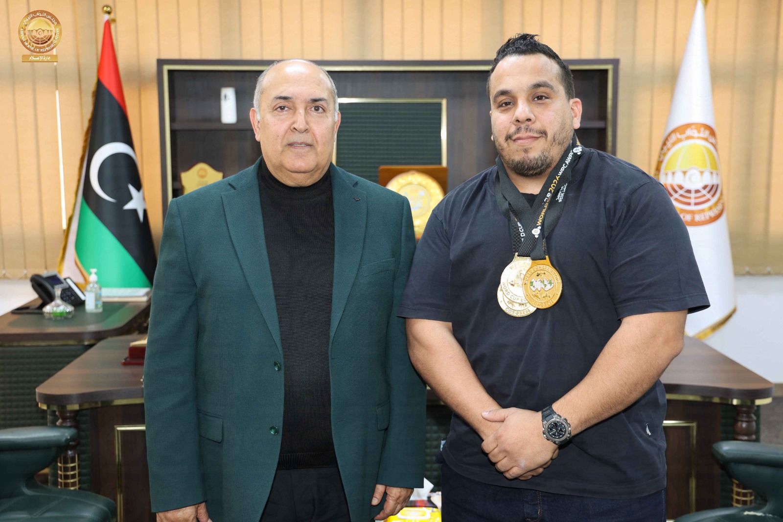 رئيس ديوان مجلس النواب يهنئ البطل الدولي “عبد الله هاجر” بمناسبة تتويجه بأربع ميداليات ذهبية ضمن منافسات كأس العالم للقوة البدنية