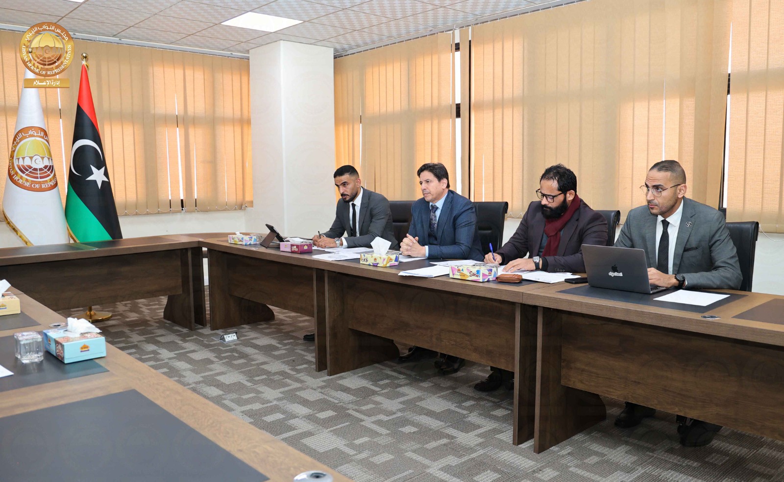 عقد رئيس لجنة متابعة ومعالجة ملف الالتزامات المالية المستحقة لصالح الشركات الوطنية المنفذة لأعمال لجنة الطوارئ والاستجابة السريعة في مدينة سبها ومدن ومناطق الجنوب الغربي النائب ” يوسف إبراهيم العقوري، و عضو اللجنة النائب ” يوسف كمود”، اجتماعًا مع الأمين العام لرئاسة الوزراء بالحكومة الليبية السيد ” مصطفى المسماري ” ، وذلك في إطار متابعة تأخر سداد مستحقات الشركات المنفذة.