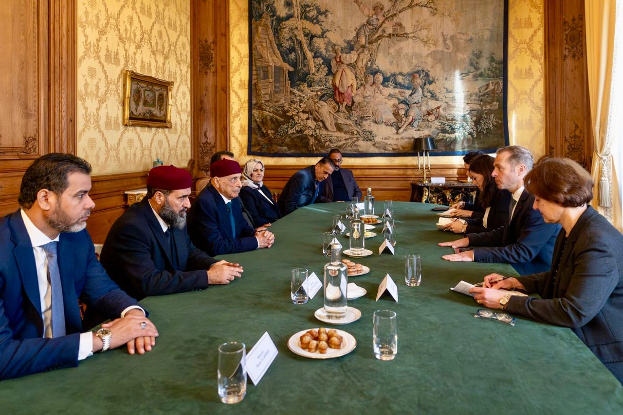 التقى السيد رئيس مجلس النواب المستشار “عقيلة صالح ” و الوفد الرسمي المرافق له الذي يضم السادة النواب ” علي كشير ، الصديق حمودة ، بدر النحيب ، عائشة شلابي ، حسن البرغوثي ” اليوم الثلاثاء رئيس الجمعية الوطنية الفرنسية السيدة “يائيل براون بيفيه “حيث اطلع السيد رئيس مجلس النواب السيدة ” يائيل براون بيفيه” على تطورات الأوضاع السياسية في ليبيا ، مؤكداً أن حل الأزمة الليبية يتطلب تظافر الجهود الدولية لمساعدة الشعب الليبي في التعبير عن إرادته الحرة في انتخابات رئاسية وبرلمانية نزيهة، مشدداً على أن قيام البعثة الأممية للدعم في ليبيا بفتح مسارات إضافية سيعقد هذا المسار ولن يكون لها أثر فعلي إيجابي على ملف التسوية السياسية.
