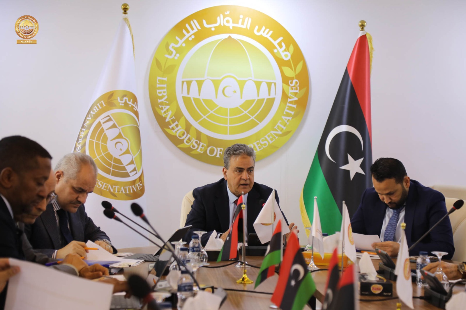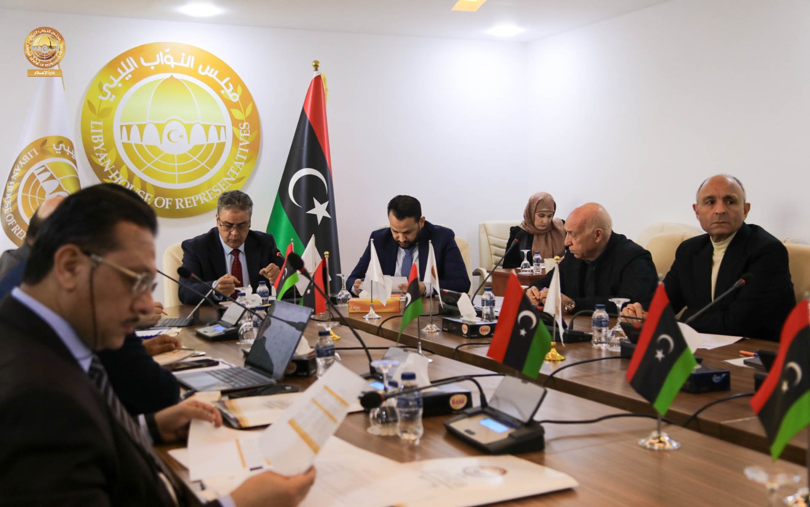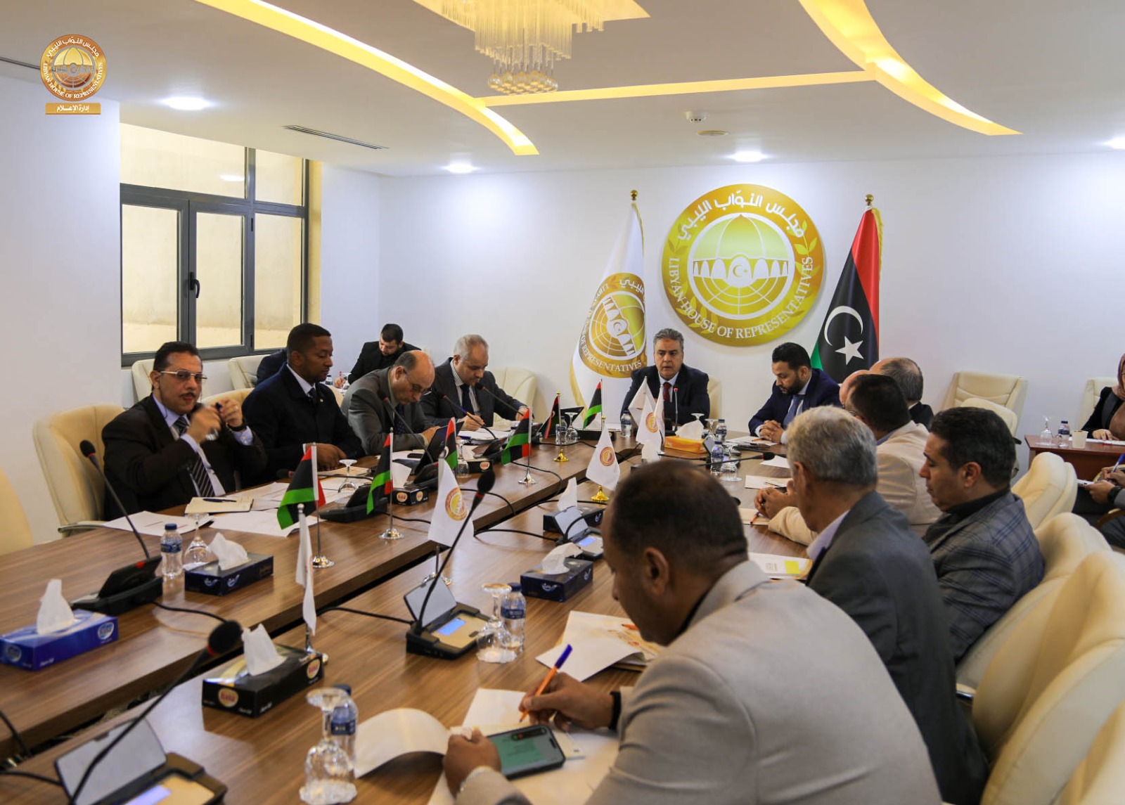عقدت لجنة التخطيط والمالية والموازنة العامة بمجلس النواب برئاسة رئيس اللجنة “د. عمر تنتوش ” و بحضور مقرر اللجنة السيد ” عامر عمران ” والسادة أعضاء اللجنة ” سالم قنان ، عبدالوهاب زولية ، فهمي التواتي ، الصادق الكحيلي، خليفة الدغاري، عبدالمنعم بالكور ” اجتماعاً مع محافظ مصرف ليبيا المركزي السيد ” ناجي عيسى ” رفقة مديري الإدارات بالمصرف ، حيث ناقش الاجتماع الذي عُقد يوم الثلاثاء الماضي بمقر فرع ديوان مجلس النواب في مدينة طرابلس الترتيبات المالية لسنة 2026 .م فيما يتعلق بقانون الميزانية العامة للدولة و الحد من التوسع في الإنفاق العام و الميزانية الاستيرادية و كذلك تحسين الإيرادات الممولة للخزينة العامة للدولة.