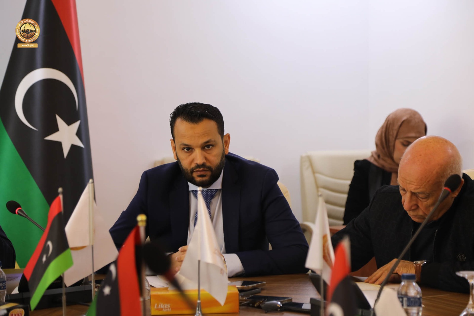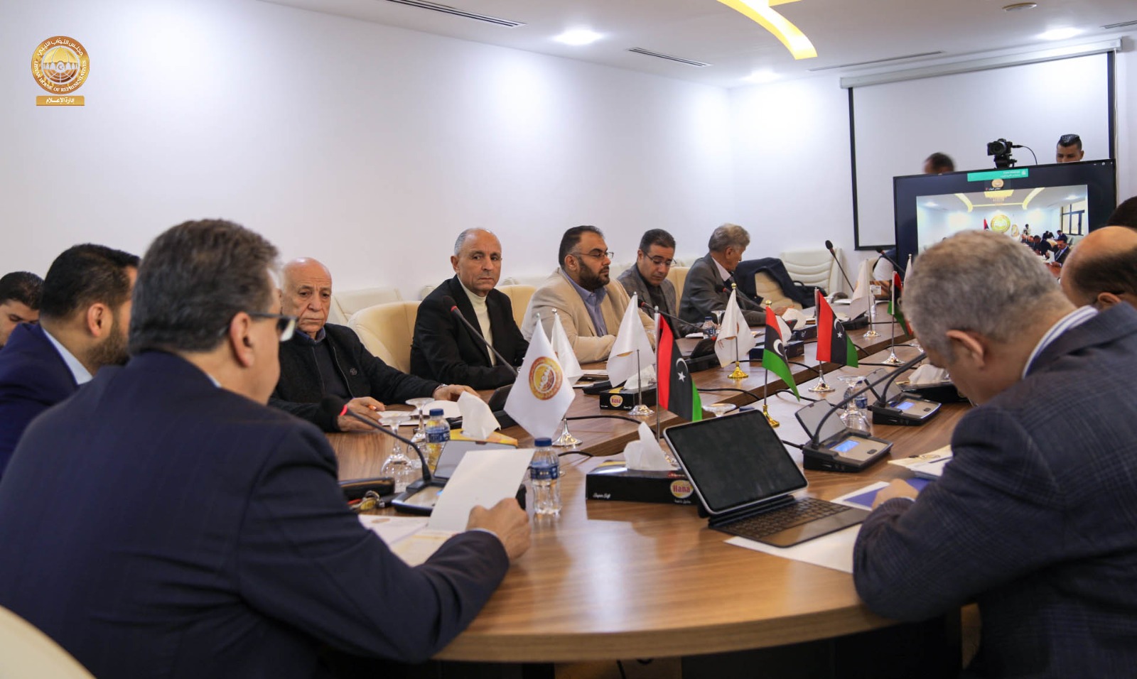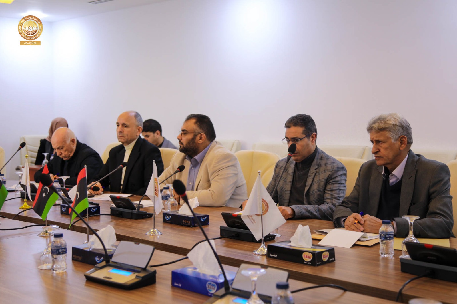 عقدت لجنة التخطيط والمالية والموازنة العامة بمجلس النواب برئاسة رئيس اللجنة “د. عمر تنتوش ” و بحضور مقرر اللجنة السيد ” عامر عمران ” والسادة أعضاء اللجنة ” سالم قنان ، عبدالوهاب زولية ، فهمي التواتي ، الصادق الكحيلي، خليفة الدغاري، عبدالمنعم بالكور ” اجتماعاً مع محافظ مصرف ليبيا المركزي السيد ” ناجي عيسى ” رفقة مديري الإدارات بالمصرف ، حيث ناقش الاجتماع الذي عُقد يوم الثلاثاء الماضي بمقر فرع ديوان مجلس النواب في مدينة طرابلس الترتيبات المالية لسنة 2026 .م فيما يتعلق بقانون الميزانية العامة للدولة و الحد من التوسع في الإنفاق العام و الميزانية الاستيرادية و كذلك تحسين الإيرادات الممولة للخزينة العامة للدولة.