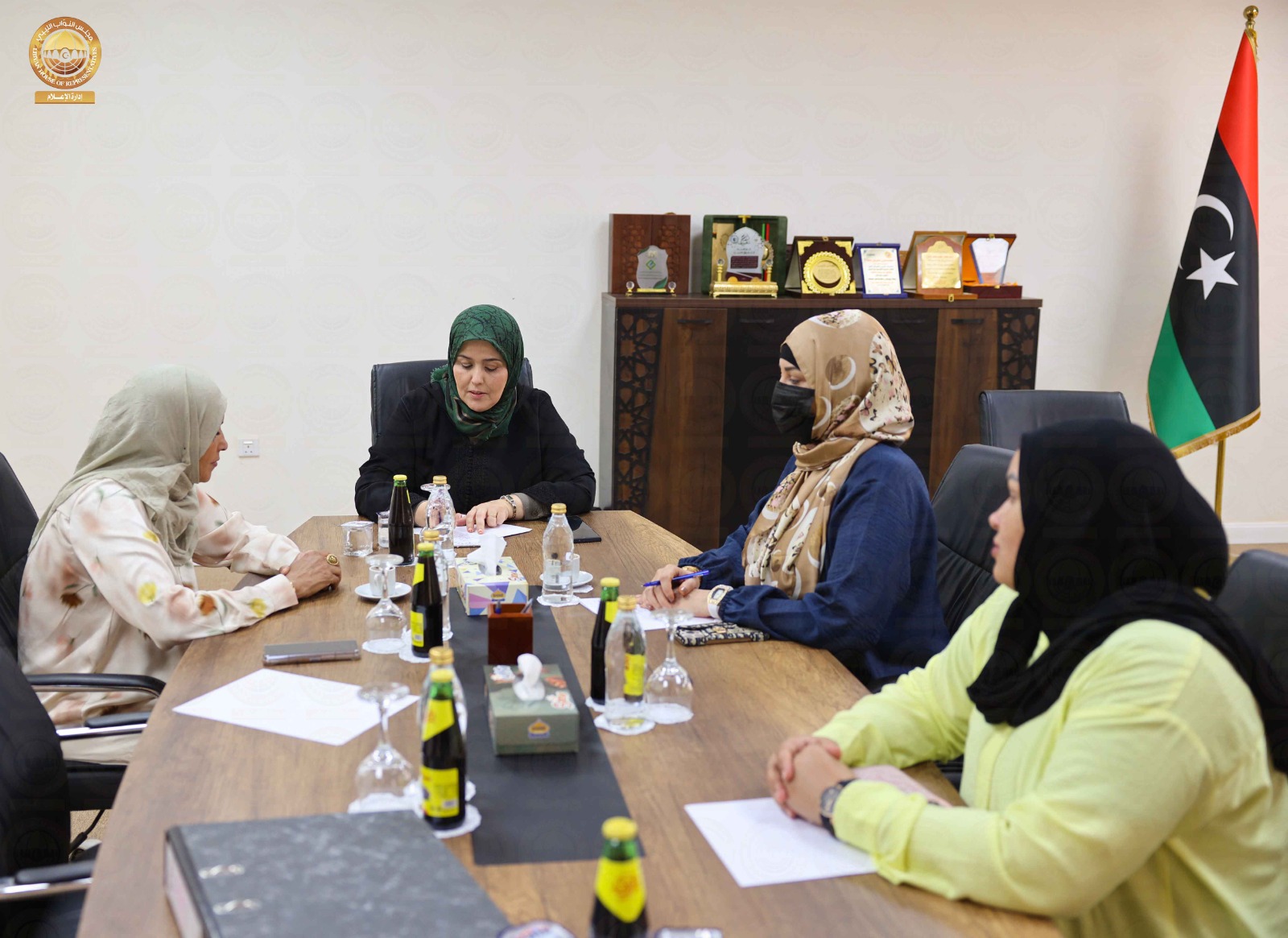 عقدت لجنة شؤون المرأة والطفل بمجلس النواب اجتماعاً برئاسة رئيس اللجنة السيدة “انتصار شنيب ” و بحضور عضوات اللجنة السيدات ” فاطمة الصويعي ، فاطمة بوسعدة ، خديجة الزروق” ، حيث ناقش الاجتماع الذي عُقد بمقر ديوان مجلس النواب في مدينة بنغازي يوم أمس الثلاثاء التحضير للمتلقى السياسي الأول للسياسيات في ليبيا بالإضافة إلى مناقشة عدد من المواضيع التي تخص المرأة في الجنوب حيث قررت اللجنة خلال الاجتماع على زيارة مدن الجنوب للإطلاع على أوضاع المرأة والطفل في الجنوب .