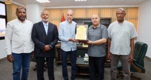بنغازي : الخميس 31 يوليو 2025.م التقى السيد رئيس ديوان مجلس النواب الأستاذ ” عبدالله المصري الفضيل ” بمكتبه بمقر ديوان المجلس في مدينة بنغازي أعضاء مجلس إدارة نادي القرضابية سبها. وخلال اللقاء أكد السيد رئيس ديوان مجلس النواب على أهمية دور الأندية الرياضية على المستوى الرياضي والإجتماعي في رعاية الشباب وصقل مواهبهم وشغل أوقاتهم فيما يعود عليهم والمجتمع بالنفع والفائدة، كما قدم تهانيه إلى مجلس إدارة نادي القرضابية وجميع مشجعي النادي على صعودهم إلى الدور المؤهل للدوري الممتاز، متمنيًا لهم التوفيق والسداد. من جانبهم عبر أعضاء مجلس إدارة نادي القرضابية خلال اللقاء عن شكرهم وامتنانهم للسيد رئيس ديوان مجلس النواب الأستاذ ” عبدالله المصري الفضيل ” على اهتمامه ودعمه للشباب والرياضة، وايمانه بالدور المجتمعي الهام للأندية الرياضية. وفي ختام اللقاء قام أعضاء مجلس إدارة نادي القرضابية بتكريم السيد رئيس ديوان مجلس النواب الأستاذ ” عبدالله المصري الفضيل ” بدرع، تقديرًا لدوره في دعم الشباب والرياضة.