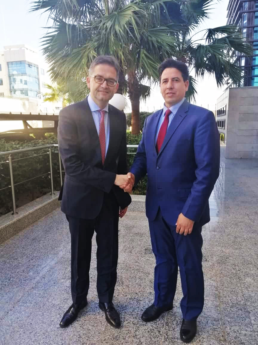 يوسف العقوري مع بياتريس دو هيلين سفيرة فرنسا لدى ليبيا ب